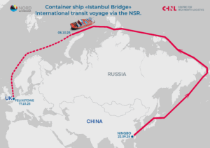 Container ship Istanbul Bridge on International transit voyage via the NSR.